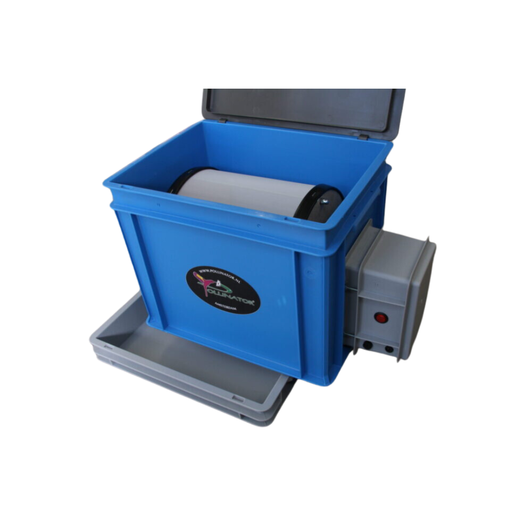 Fyld tromlen, tryk på afbryderknappen, læn dig tilbage og nyd turen. Med den bundløse Pollinator® er der ikke længere behov for at fjerne tromlen til produktsamling eller kvalitetsseparation – Du flytter simpelthen maskinen inklusive tromle og plantemateriale hen på den næste bakke og fortsætter med at dreje, mens du samler dine top kvalitetsprodukter.Vi leverer to indsamlingsbakker med denne maskine, så du kan starte med det samme.Jo længere du tumbler dit materiale, jo mere forurening af planten går med ind i dit produkt. For at opnå separate batches med en kvalitetsgradient, anbefaler vi at indsamle dine trichomer med jævne mellemrum.Pro tip: