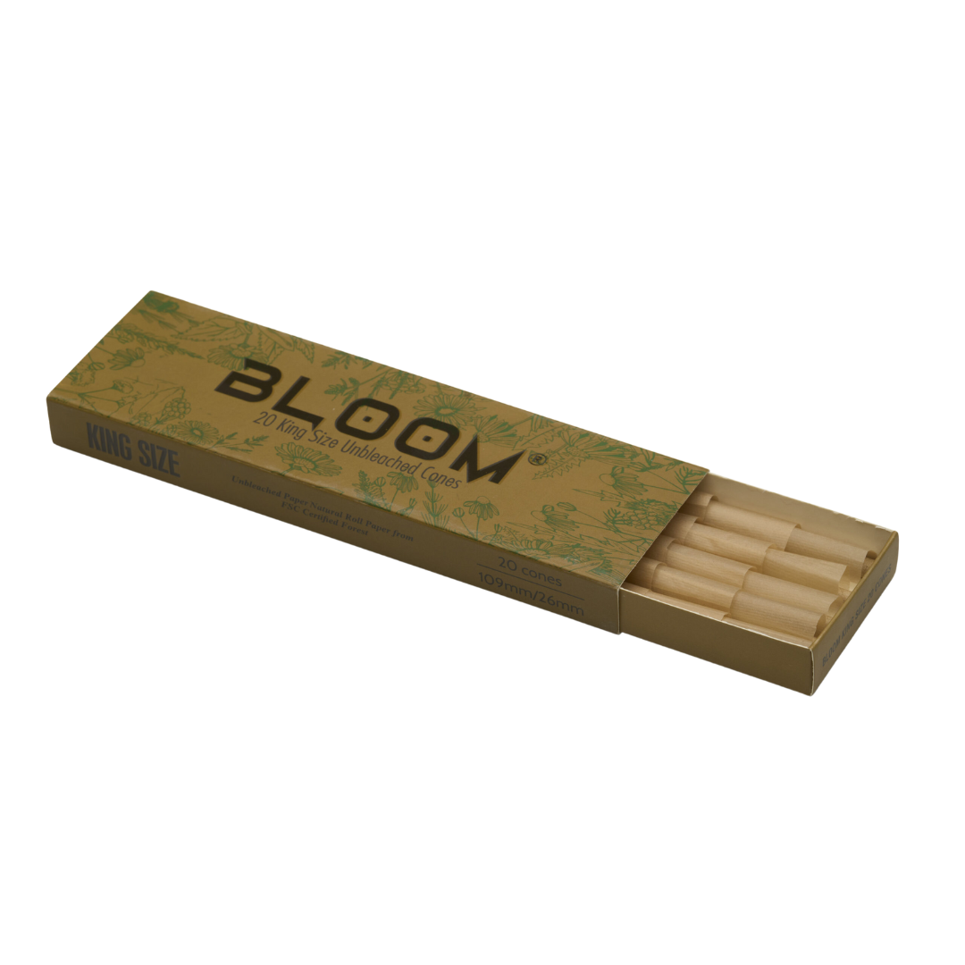 Bloom Unbleached King Size Cones 20 stk er den perfekte løsning for dem, der ønsker en hurtigt tilgængelig og naturlig rygeoplevelse. De er prerullet og klar til brug, hvilket gør dem både praktiske og brugervenlige for alle.