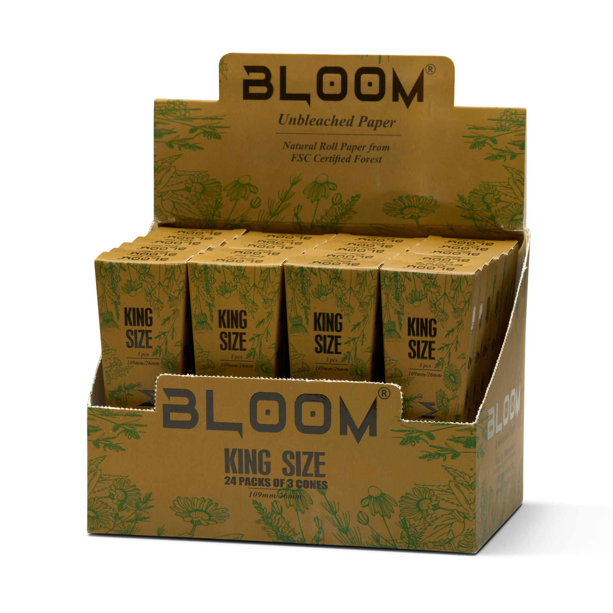 Bloom Unbleached King Size Cones 3 stk er den perfekte løsning for dem, der ønsker en hurtigt tilgængelig og naturlig rygeoplevelse. De er prerullet og klar til brug, hvilket gør dem både praktiske og brugervenlige for alle.