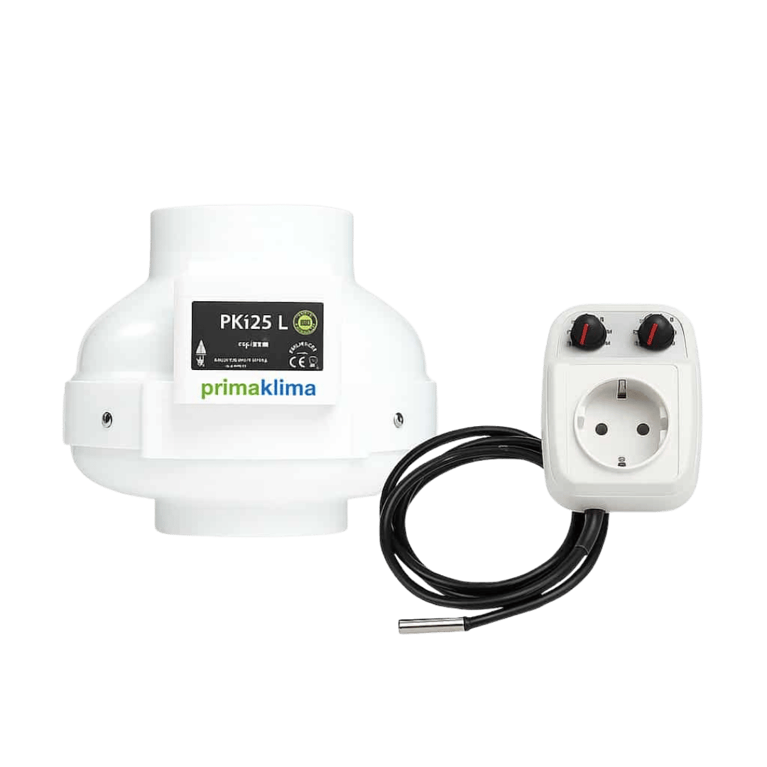 Få et stabilt og støjsvagt indeklima med et komplet kit, der kombinerer en driftssikker Prima Klima Ø125 mm kanalventilator med en GSE Digital Temperatur Controller (op til 5A). Du indstiller blot ønsket temperatur og minimumshastighed – herefter regulerer controlleren automatisk blæseren, så temperaturen holdes omkring dit setpoint uden unødige speed-skift.