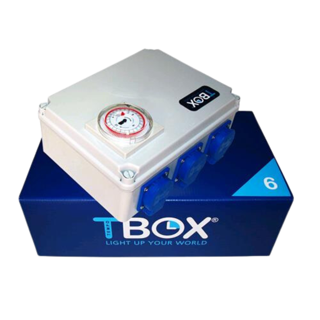 TBOX 6, er en tidsboks, der er i stand til at styre op til 6x630w, 6x600w, 8x400w eller 12x315w tilbehør.