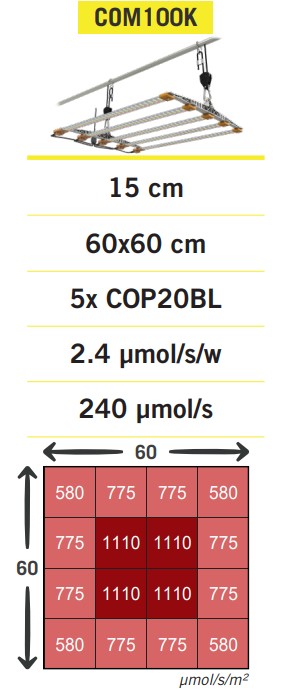 Cosmorrow 60 – 200w : PPE = 2.4μmol/s/w