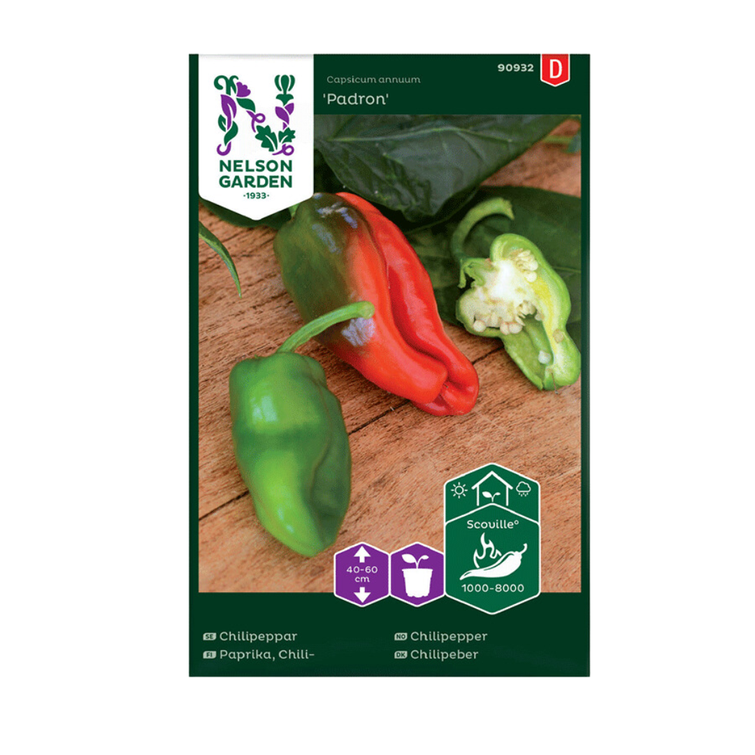 Padron chili, stammende fra regionen Padron i Galicien, Spanien, er en yndlings delikatesse blandt mange madentusiaster. Disse små grønne chilier er berygtede for deres “lotteri”-natur – mens de fleste er mildt krydrede, kan du støde på en lejlighedsvis stærk én, hvilket giver en spændende overraskelse! Padron chilier er mest berømte for retten “Pimientos de Padrón”, hvor de er let stegt i olivenolie og drysset med havsalt. Hver pose indeholder frø nok til at dyrke ca. 3-5 robuste planter. Disse chilier trives bedst i et tempereret til varmt klima og bør plantes efter den sidste frost. De er særligt velegnede til drivhusdyrkning, hvilket sikrer en længere vækstsæson og beskyttelse mod uforudsigelige vejrbetingelser. Med deres hurtige vækst og tilpasningsevne til forskellige jordtyper gør Padron chilier dem til en ideel sort for både begyndere og erfarne gartnere. Optimer dit chiliudvalg ved at integrere Padron i din haveplanlægning.