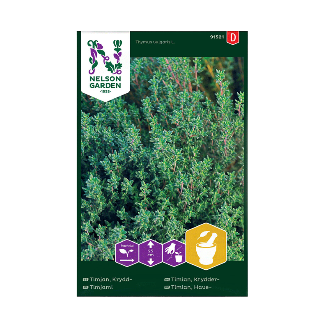 Timian er en tidløs urt, der har fundet sin plads i køkkener rundt om i verden gennem århundreder. Kendt for sin stærke, jordnære aroma og subtile citrussmag, er timian en fast bestanddel i en række retter, lige fra Middelhavet til Caribien. Den er uundværlig i bouquet garni, en klassisk fransk urtebuket, og er også en stjerne i mange grillet, braiseret og bagt mad. Ud over dens kulinariske fortrin er timian også værdsat for sine medicinske egenskaber, især dens antiseptiske egenskaber. Med vores timian frø kan du forvente op til 25 robuste planter, der trives i solrige, godt drænede områder. Dens lille størrelse og buskede natur, kombineret med sarte lyserøde eller hvide blomster, gør den til en ideel tilføjelse til både haver og potter.