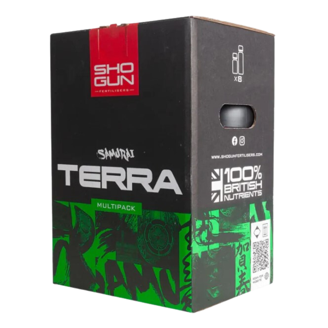Shogun Terra Multipack er spækket med vores fantastiske Samurai Terra Grow og Terra Bloom gødning sammen med et fantastisk udvalg af tilsætningsstoffer: Start, Katana Roots, CalMag, PK Warrior 9/18, Sumo Active Boost og Dragon Force.